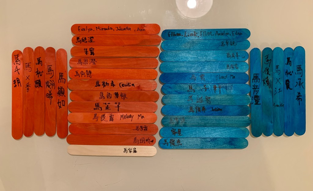 他們可以把男生名字寫在藍色棍上,女生名字寫在紅色棍上