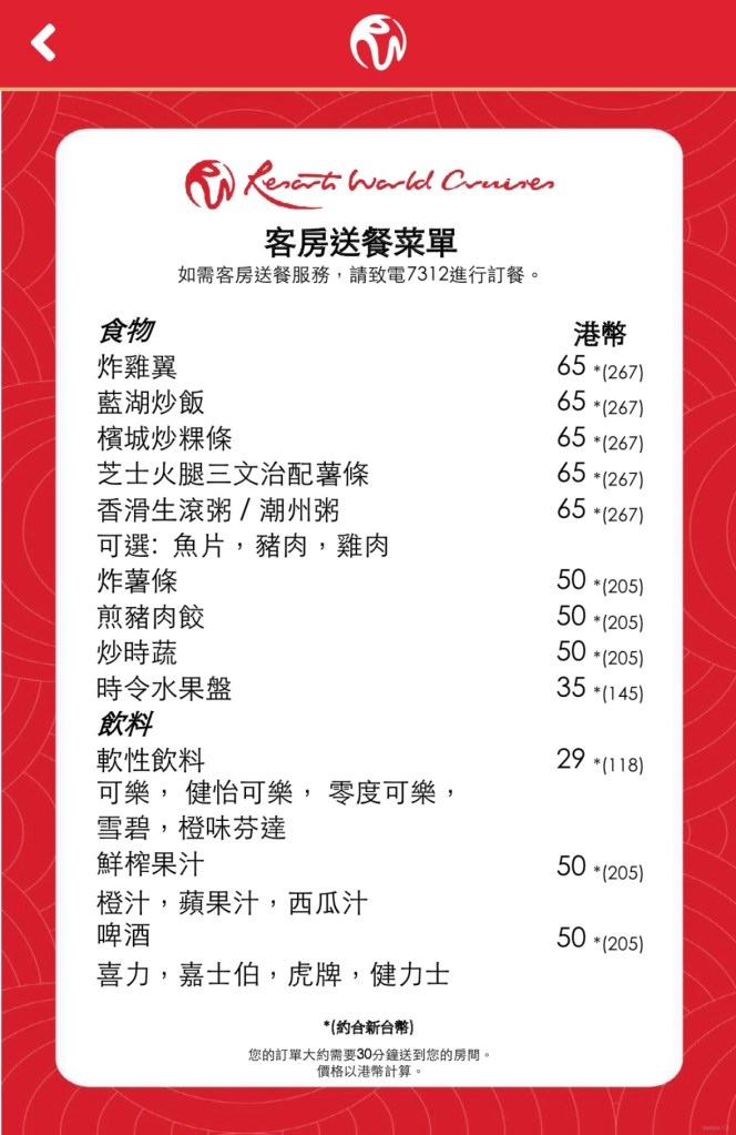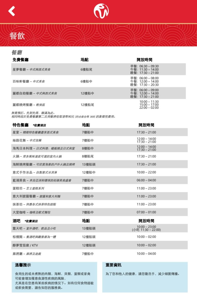 但4天3夜,基本上連免費餐廳也未好好嚐過,所以就沒有試了