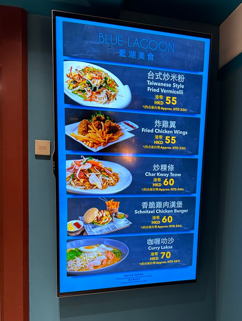因為在免費餐廳及台灣島上已經吃夠了,所以沒有額外在付費餐廳用餐
